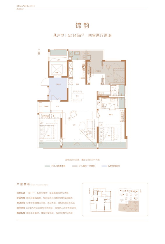 绿城春月锦庐针对城市精英人群的居住需求,打造了 140-220㎡的高端户型产品,涵盖四房两厅两卫、五房两厅三卫、叠拼别墅等多种产品形态,每个户型都以 “阔绰空间、全景视野、豪华配置、私密尊崇” 为核心亮点,满足精英人群对品质生活、身份认同与圈层社交的追求。